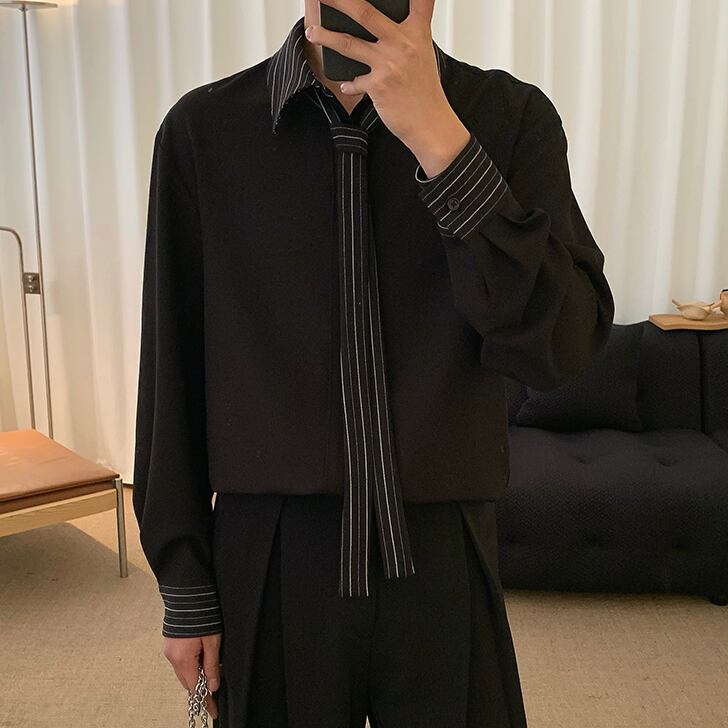 都会的なモードスタイルを演出する、洗練されたデザインシャツ。襟とカフスのコントラストカラーディテールが特徴で、クラシックなシャツスタイルに個性的なアクセントを加えています。程よいオーバーサイズのシルエットが抜け感を演出し、カジュアルからフォーマルまで幅広く対応可能。
